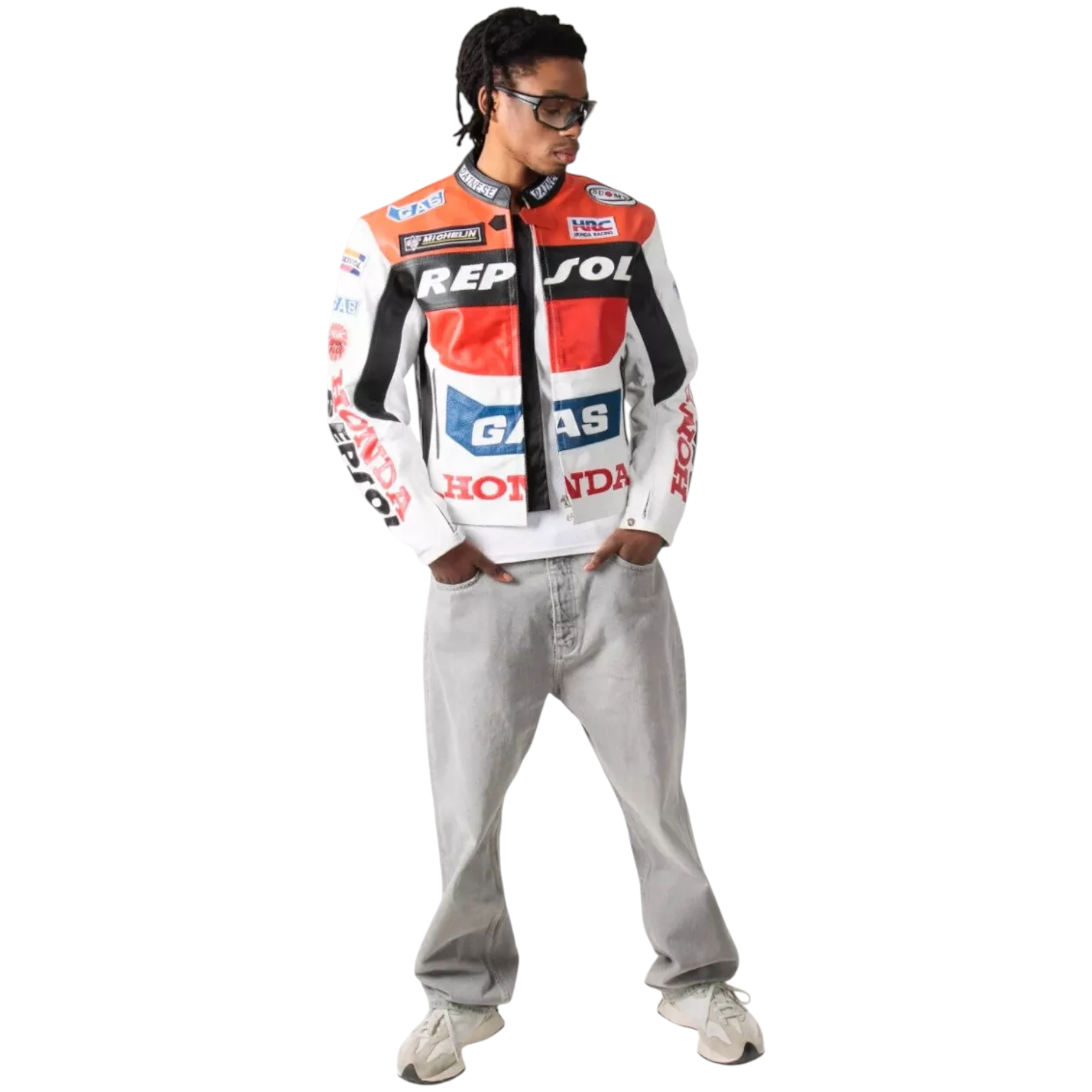 Dominate the streets in this limited-edition Repsol Honda Racing Leather Jacket — a bold, authentic, Y2K-inspired moto piece made from premium genuine leather for comfort, attitude, and timeless style.